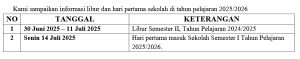 Libur Semester II Tahun Pelajaran 2024/2025