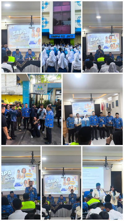 SAPA PRABU JAKARTA EDU ACTION berkunjung ke SMPN 62 Jakarta pada tanggal 20 Mei 2025. Kegiatan di hadiri dan di buka oleh KASUBKEL PDPK Bidang SMA Dinas Pendidikan Provinsi DKI Jakarta Bapak Ujang Suherman, Kepala SMAN 54 Jakarta Bapak Rustaman S.Pd, Kepala SMPN 62 Jakarta Bapak Rudi Kartono M.Pd, dan KASUBKEL Bimbingan Penyuluhan Satpol PP Jakarta Bapak Alvendor.
